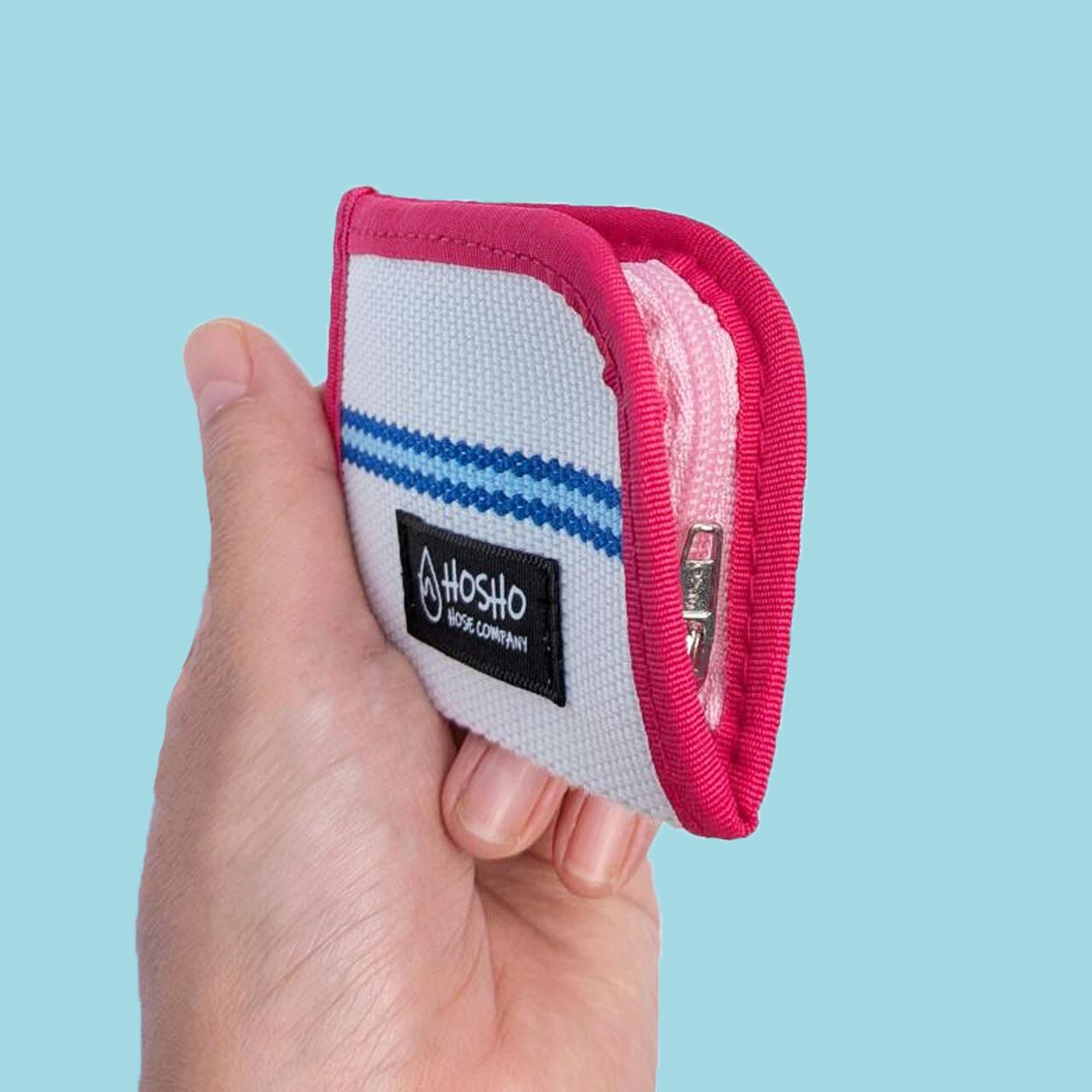 消防用/散水用ホースの端材を使用したチャック付コインケースです。