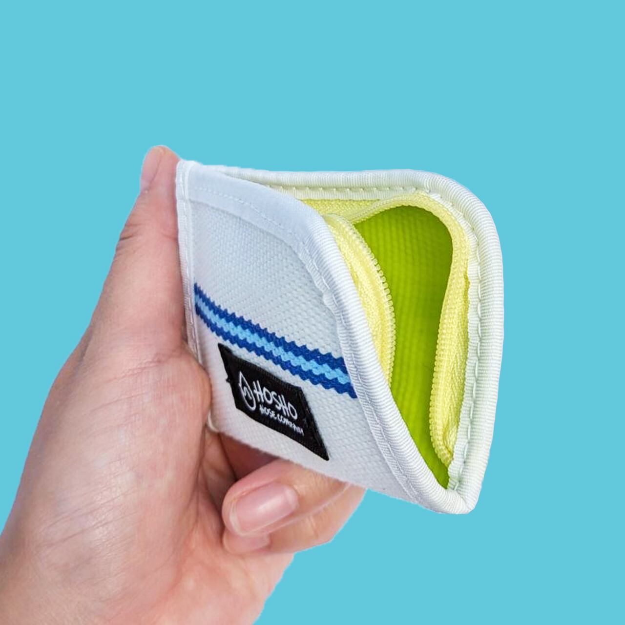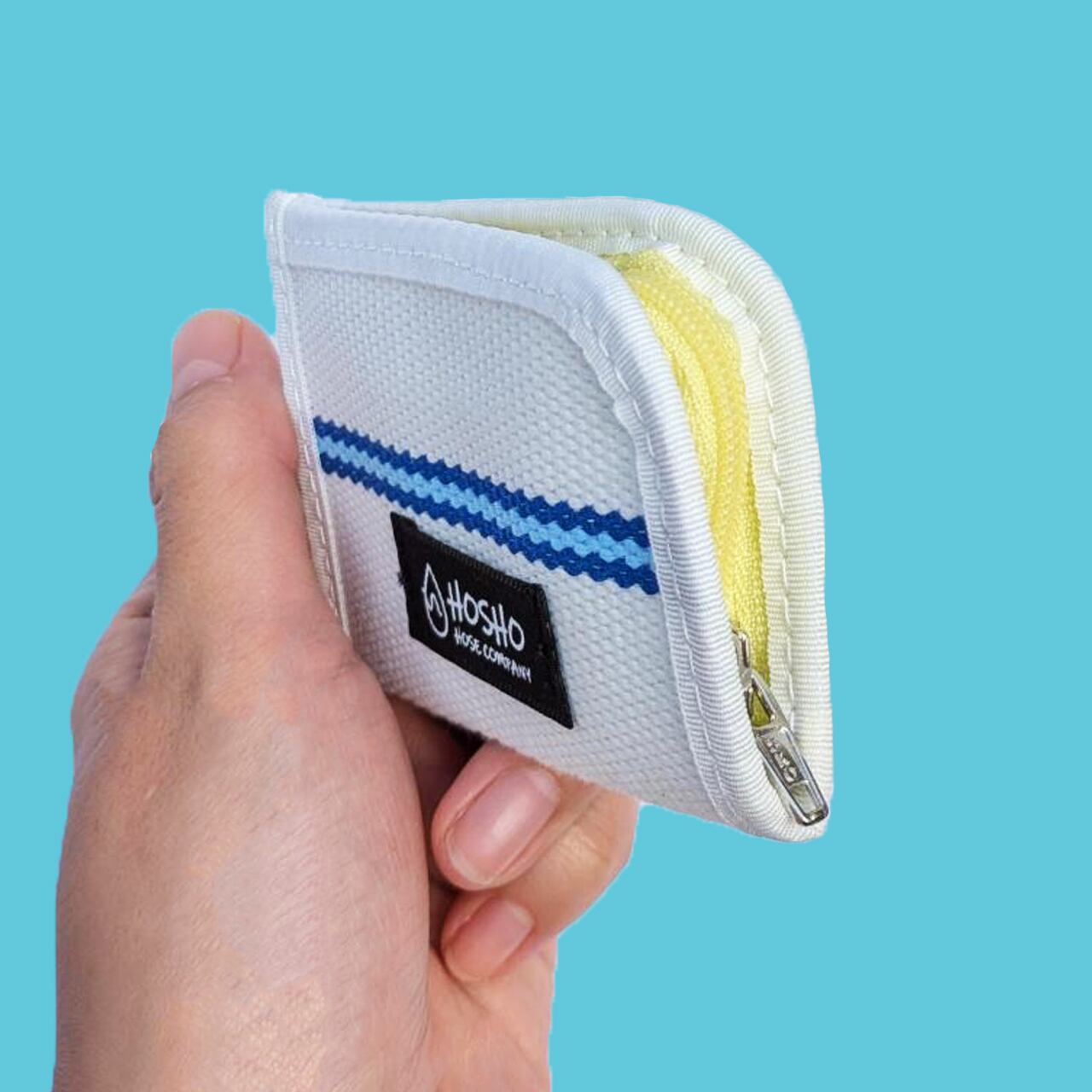 消防用/散水用ホースの端材を使用したチャック付コインケースです。
